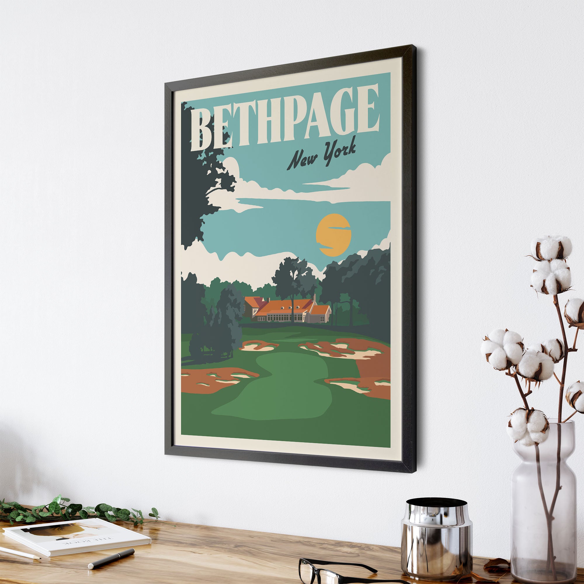 Dive into the golfing legacy of Bethpage, New York with our minimalist travel print. Nestled in the charismatic landscapes of Long Island, Bethpage resonates with tales of golfing greatness — from the legendary Tiger Woods' 2002 US Open triumph to Brooks Koepka's gripping PGA victory in 2019. With the anticipation of the Ryder Cup in 2025, Bethpage promises more iconic moments. Perfect for those who celebrate the rich tapestry of golf's history and yearn for its unfolding future.